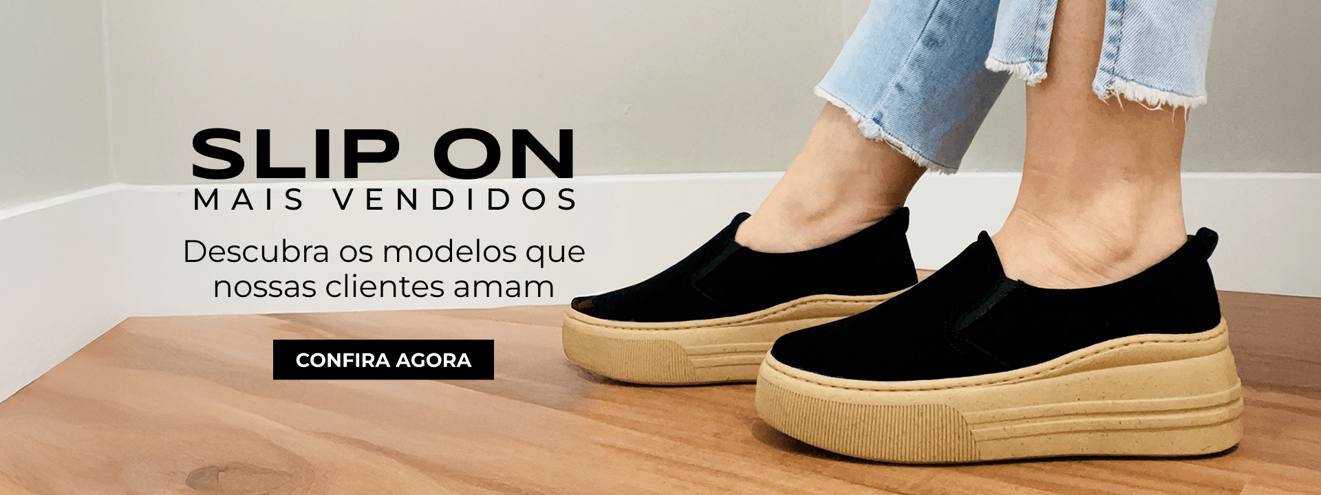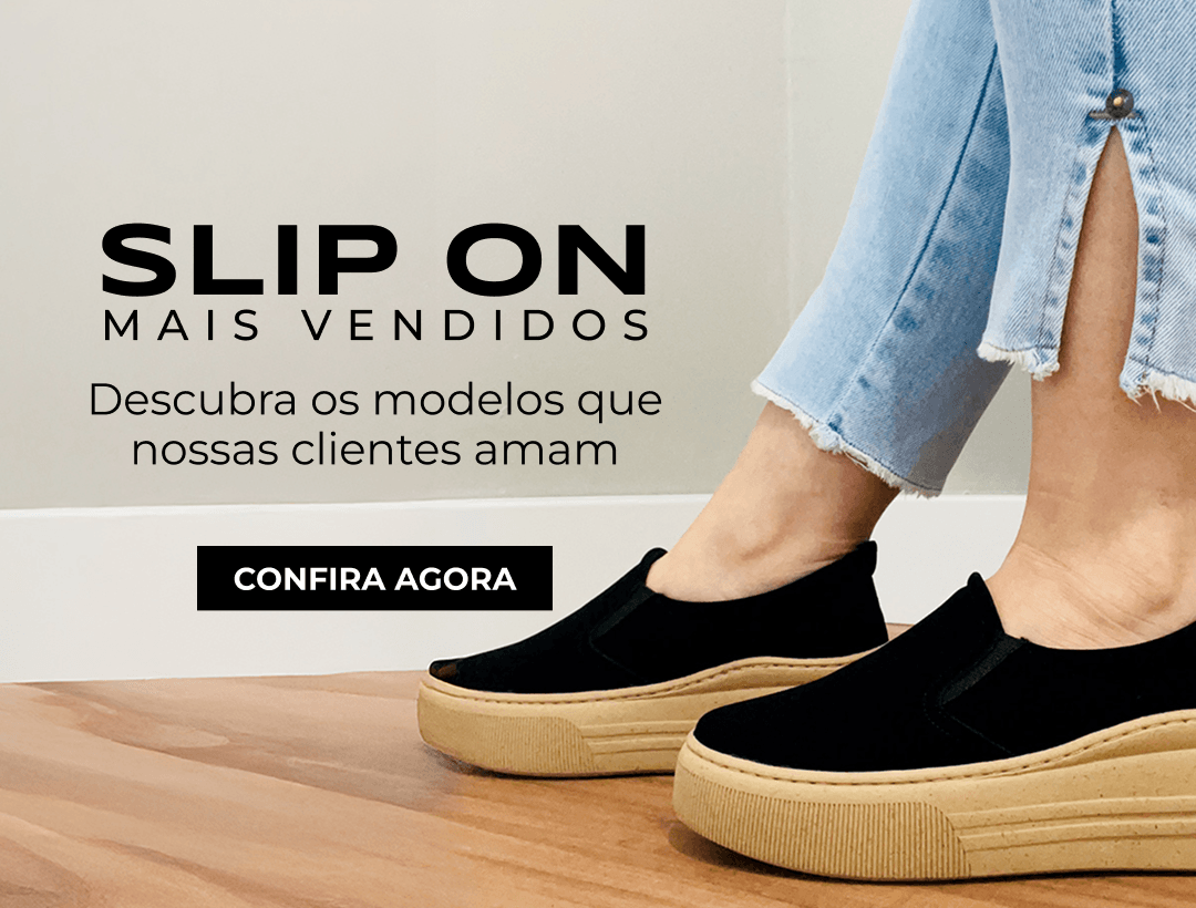 Slip On Melina - Suede Preto Sola CastanhaVer Produto